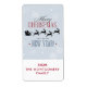 Julpresentetikett med en subtil grått-bakgrund med snöflingor. Finare-trendigets brev där det står: God jul och Gott nytt år. Med en svart silhuett som kör i sitt sligh dras av hans renar som flyger över himlar.