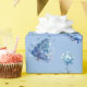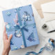 Vackert blå papper med tomten och hans vänner. Det här är bara ett bra mönster för alla i din familj eller alla dina vänner i julas.