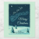 Ho Ho God jul personlig vin. Designad med en vintage illustration av tomten i hans sligh som dras av hans renar. Små stjärnor sprinklar natten himlar. Snö täckte gräs träd på marken. Känn vintagens återtro.