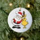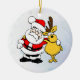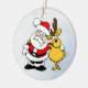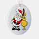 Det här är en julprydnad med en tittar roligt, tomten och en lycklig-renar med arm runt om och som önskar er en mycket god jul och en mycket lycklig julhelg.