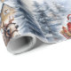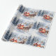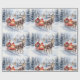 Ett glupskt Jultomten kör ett rött slift som dras av en renare genom vintern. Snö släcker marken och mysiga hus tittar från bakgrunden och skapar en magisk helgdag.