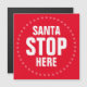 Tomten stannar här, röd och vit, söt, rolig magnet Juldekorationer omgiven av en känslig rund andedräkt av söt snöflingor