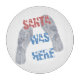 Tomten var här rosa och blå text och två tomma fotavtryck i det färska snö. Tjugosidiga utskrifter, presenter och t-shirts av Julafton till roligt, humor och bra