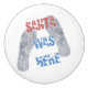 Tomten var här rosa och blå text och två tomma fotavtryck i det färska snö. Tjugosidiga utskrifter, presenter och t-shirts av Julafton till roligt, humor och bra