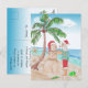 Julkort med Jultomten i en sommarskjorta med flamingos som bygger en sand snögubbe under handflatan träd. Skicka din familj och dina vänner en God jul med den här roliga snöfågeln eller Florida eller kusten som lever på julkort.