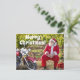 Biker julkort med tomten vilande av motorcykeln i ett varmt klimat efter en hård natt. Lustigt ändrad bild med stort roligt brev "God jul!" eller redigera texten till ditt eget meddelande om du vill.