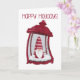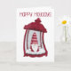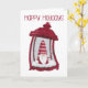 Festlig semesterslykta med liten tomte inuti.