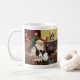 Tomten hemma med sin två japanska chin, som slappnar av inför branden före den stora dagen. Lägg märke till att Mona Lisa sitter på samma hund.