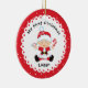 Baby första julprydnad har en adjektiv jultomtens hjälppare pojke på en röd och vit polka prickad bakgrund! Enkel att anpassa med information och datum