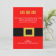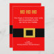 HO HO! Skratta dina vänner och din familj ansikte med det här vackra julhälsningskortet. Det är från Santa's jacka, ett ljust rött med ett svart bälte på mitten med ett fyrkantigt guld-låsbeslag. Anpassa med all information om party. Kolla in de många andra stilar och färg som vi har i kort.