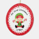Baby första julprydnad har en beundransvärd liten del av pojke på en röd och vit polka prickad bakgrund! Enkel att anpassa med information och datum