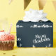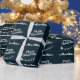 Den här eleganten är en mörk blått julomslutning papper med tomtens silhuett med sina renar, som flyger över husen i en cirkel av stjärnor. Texten i ett vitt teckensnitt är helt och hållet anpassade.