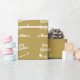 Den här festliga golden Julinomslaget pappra präglar tomtens silhuett med sina renar, som flyger över husen i en stjärnornas spår. Texten i ett vitt teckensnitt är helt och hållet anpassade.