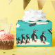 Valar och pingviner leker med tomtens hatt. Vintage stil teckning.