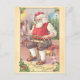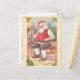 Den här vintagen för reproduktion av vykort har en cirkel 1910-bild av jultomten som snabbt förbereder sig för jul på sin verkstad.
