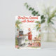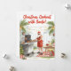 En rolig och stilren twist på julklassikern — Tomte Claus som grillar på en bakgårdsbarbecue i en klar akvarellstil. Tomten har solglasögon och en röd förkläde medan han vänder burgare under palmerna, omgiven av festlig juldekoration, lyktor och inslagna presenter. Perfekt för julfirande i soligt klimat.