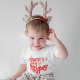 Tomtes Lilla Hjälpare Hjärtat Röda Skript Present Motiv Bebis. Söthet för din bebis och småbarn under den spännande julen, med konstnärlig typografi med hjärtan och present och snöflingemotiv i rött. Texten kan ändras till en annan färg om så önskas.