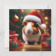 Bilden visar en julmarsvin iförd tomtehatt och redo för jul.