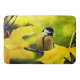 Gult om att äta eller titmusfågel på en träd-maple-tvist i gult löv. Den gyllene hösten. Fågelns färg passar färg i löven. Så den lilla söta björnen är klädd till säsongen. Säsongens hälsningar. Badmattan för badrummet. Glöm inte att välja en annan storlek av mattan.