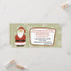 En julinbjudan till vilken firande som helst. En brun bakgrund med vitt snöflingor har tomten och en dubbla-framtagen panel som håller din anpassning. (PB)
