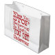 Lustigt presentväska säger i rött brev: "När du slutar tro på tomten får du underkläder." Se vårt motsvarande papper för vävnad, pappert omslagspapper och skjortor. Tack för att du stannar.