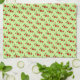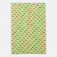 Liten blommigt på papper, på vass grönt handduk för köks- eller badhanddukar.