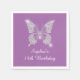 Tonåring flickans födelsedag med vit diamantfjärilskonstruktion för att anpassa namn och åldern i vit skripttext på lavendelbakgrund.