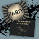 Födelsedagsfest inbjudan för tonårspojken. Svart och smutsig guld färg med stil med det grå typsnittet på ett vågrät-kort. Stora "Party"-bokstäver på framsidan, med tryckt text på baksidan. Anpassa enkelt med så många linjer text som behövs i styckeformuläret.