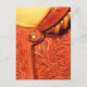 Anpassa det Westerna vykortet för rostfritt läder med ett eget personligt meddelande till cowboyen eller cowgirl. Den här charmerande anpassningsbarna land och det westerna vykortet innehåller ett foto av en brun och gult hästsadel med en smak av tunt, verktygslöst läder löv.