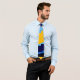 Abstraktens geometriska mönster av diagonalt rand med tänderna uppåt. Alla skuggor av blått som överlappar gult rand. Idealisk för modern mans slips. Fantastisk är en slips för dig själv eller som gåva.