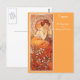 Ett vykort med illustration av Art nouveau från Alphonse Mucha (1860-1939), Topaz. En porträtt av en moderiktig kvinna klädd i en orange. En del av Precious Stones Series från 1900.