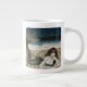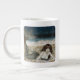 En texturerad målning med en sökare ram av en sjöjungfru som baskar i solljuset på en strand.