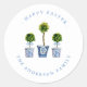 Prydlig & Elegant personlig Glad Påsk Etikett/sigill med akvarelltopiarier i blå och vit kruka.