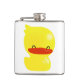 En glad och leende gult gummi i en dunkel vinylomslagen kolv. Toppen söt!