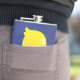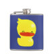 En glad och leende gult gummi som dammar mot en blå vinylomslagen kolv. Toppen söt! Drick mig!
