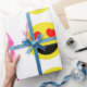 Toppen gullig stor regnbågepilbåge som slår in presentpapper