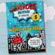 Toppen Hero Tecknad Bok Stil Boy Birthday Blue Inbjudningar