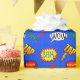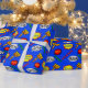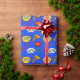 Den roliga färgrika pojke uttrycker den toppna hjältehandlingen inpackning av papper. Tittar bakgrund för blått tecknaden, med gult, grönt, den röd och vitord och handlingen bubblar dekorerar detta roliga slående in papper. Skräddarsy för att tillfoga någon extra text som du önskar.