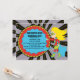 Starta ditt firande av höger med denna TOPPNA inbjudan. Underbar för den toppna hjälte i ditt liv! Det är en förtjusande inbjudan med förmiddagögat som fångar bakgrund. Det är svarten, grått och gult. Det finns jagged bubblar med en yttre del för limefruktgrönt, därefter som ett rött med en ljus blått centrerar. Bredvid det är ett iklätt rött för toppen hjälte och ett grönt med en blåttudd som framåtriktat marscherar. Hon har blont hår som tillbaka blåser. Kontrollera ut de många andra produkterna, och designer i denna fodrar. ©JWillustrationer