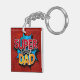 Toppen Mustache Modern Grunge Keychains har texten "Toppen" i modern röd och gult typografi på en blå och röd grunge-bakgrund accentuerad med mustasch. Gåvor till Pappa för födelsedag, Fars dag, jul, helgdagar med mera. Skapat av Evco Studio www.zazzle.com/store/evcostudio
