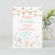 Toppen Sweet Anpassade Birthday bjudande. © Radenbrea Studios at Zazzle. Tjuda djur marscherar över kortet i parad. Med banderoller överst kan det vara en cirkus parad. Anpassa med er egen namn, data, ställe och annan information.