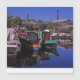 Heron rusade på beviset på en smal båt förtöjd på Peak Forest Canal nära New Mills Derbyshire England