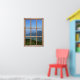 Poster det som ett fönster - bergsöverdelen Önskar du kan ha den vackra bergsytan från en bergsrestaurang hemma också? Med bild som ser ut som ett fönster du kan! Träfönstret ramar är en fantastisk bild av Europas Alpernor, med grönt träd och ängar nedanför, dalen bortom och i avstånd topparna i en alpregionkedja.