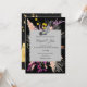 Med elegant sammanfogande kontrasterande element, presenterar denna fantastiska bröllopsinbjudan en livfull, mångfärgad blomsterdesign som blommar mot en djup svart bakgrund. Inkapslad i en tidlös geometrisk ram, lägger kortets stilfulla typsnitt till en touch av modern sofistikation, och lovar en minnesvärd firande av kärlek och glädje.