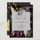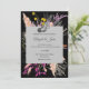 Den här fantastiska bröllopsinbjudan är en elegant blandning av kontrasterande inslag, och den har en pulserande blommigt med flera höljen som blåser mot en djup svart bakgrund. Kortets snyggt är inpassad i ett tidlöst geometriskt gräns och ger en nykter sofistikering som lovar en minnesvärd firande av kärlek och glädje.