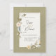 Denna vackra och ömtåliga design är elegant men enkel. Den har en ömtålig dubbel ram med torkade boho-blommor i mjuk persikoblush, kräm, tan och grönt med en sliten sagegrön ram runt omkring. Bakgrunden är en kompletterande sliten sagegrön färg. Denna design är en del av Dried Boho Floral Frame Green Wedding Suite-kollektionen skapad av Simply Farmhouse Press.