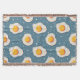 A mönster från färska kylda ägg på himlar blå bakgrund. Bra morgonfrukost:)