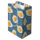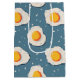A mönster från färska kylda ägg på himlar blå bakgrund. Bra morgonfrukost:)