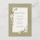Den här vackra bröllopsmottagningskortet är elegant men ändå enkel. Den har en delikat dubbla ram med torkade blommor i mjuka persikor, kräm, tanka och gröntar med nödsutgjutelse grönt ram runt den. Bakgrunden är en komplementär nödlidande grönt. Denna konstruktion ingår i den torkade Boho-Blommigten Ram Grönt Bröllop Suite-samlingen som skapats av enbart Farmhouse Press.