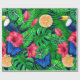 Tropiskt mönster tillverkat av handmålade vattenfärger inslag-löv, tukan, hibiscus och fjäril.